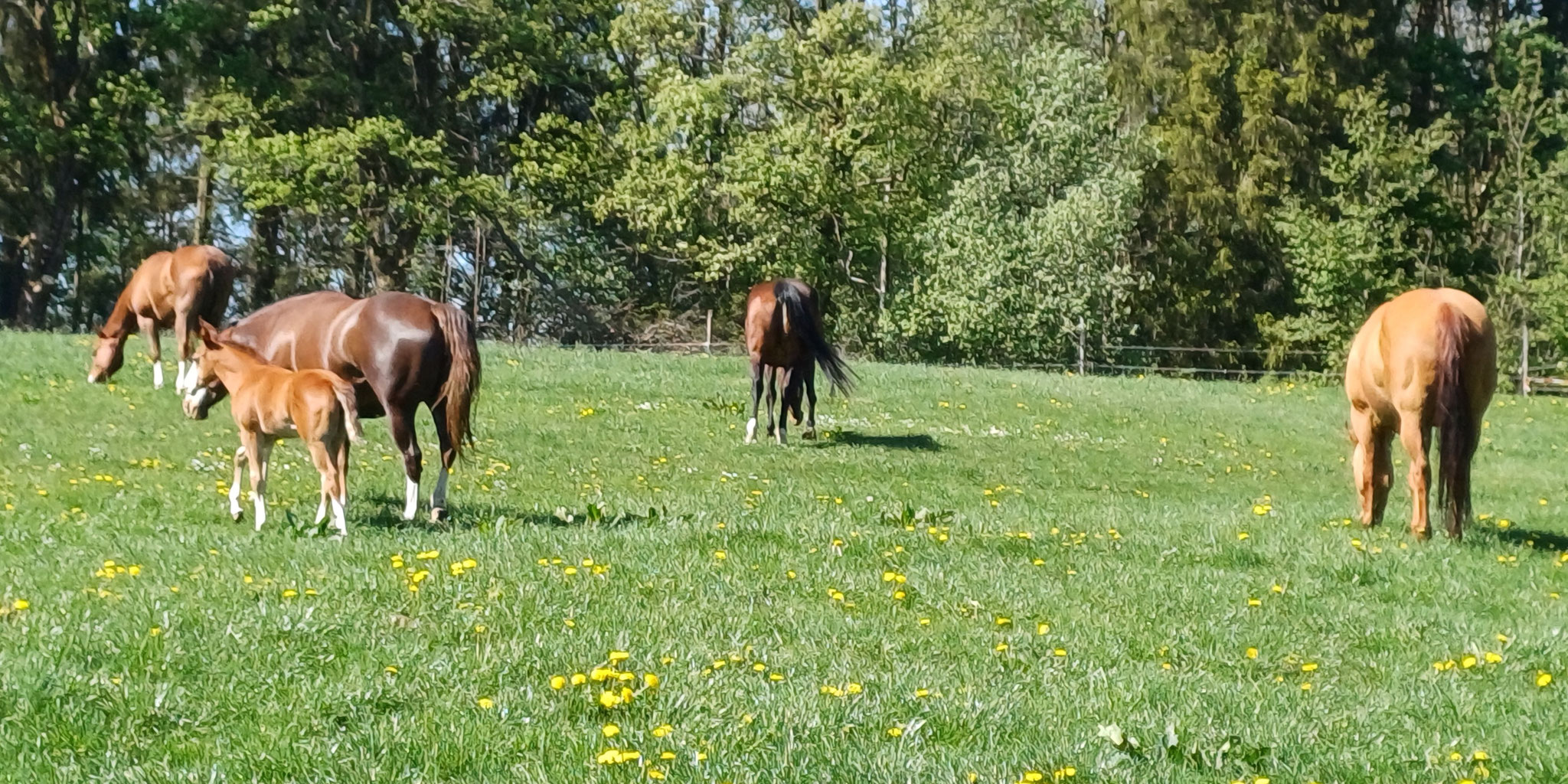 Unsere Pferde leben im Herdenverband und genießen ihr Leben als Zuchtstuten. Ihre Gesundheit und ihr Wohlbefinden stehen für uns an erster Stelle.